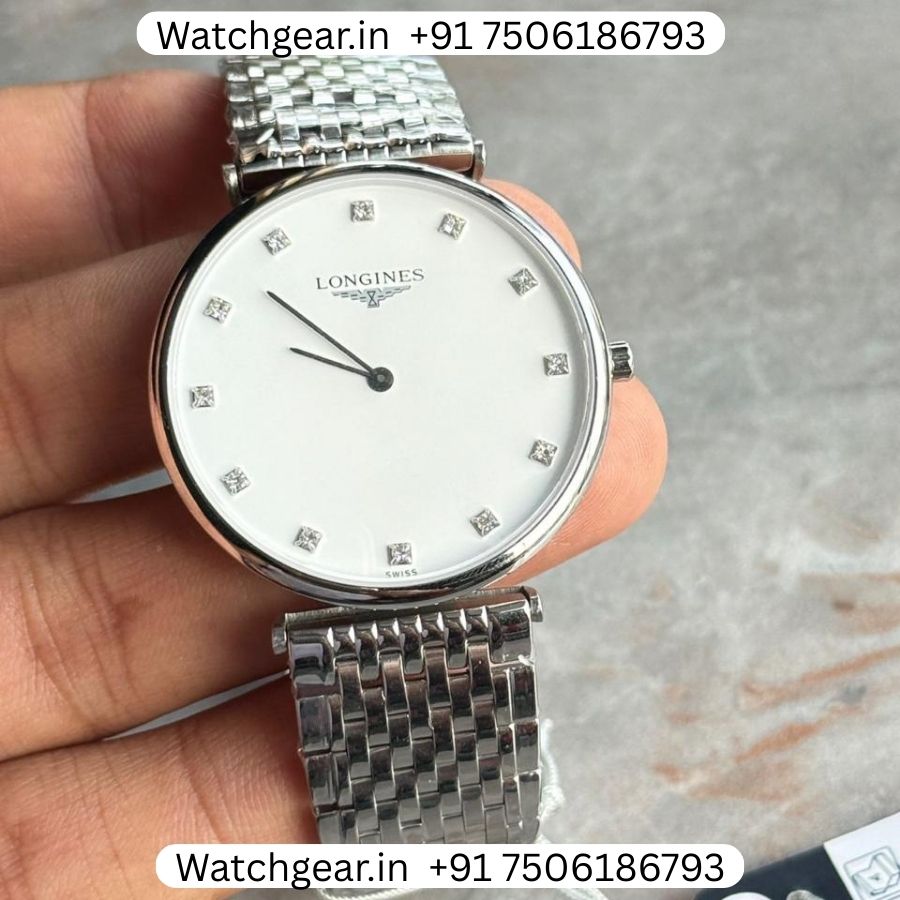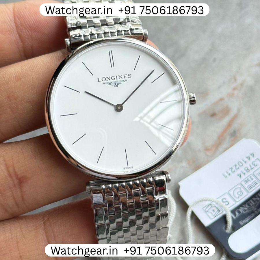 The Longines La Grande Classique White Dial Steel ‘SLIM’ Watch is a clean and elegant timepiece designed for those who prefer a simple and timeless look. It features a crisp white dial paired with a polished steel finish, giving the watch a refined and versatile style that suits both daily wear and formal occasions. Its ultra-slim design ensures a lightweight and comfortable fit on the wrist. Built with the trusted craftsmanship that Longines is known for, this watch is inspired by the classic Longines La Grande Classique collection and offers a perfect balance of style and simplicity.